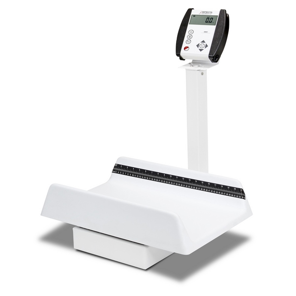 The Detecto model 8435 offers you a choice of pounds or kilograms. Lightweight and attractive, this baby scale features a heavy-duty, rust-resistant understructure and digital speed and accuracy. The polystyrene trays are a snap to clean and the scales feature compact footprints. The heavy-duty steel base provides patient assurance while weighing. A built-in measuring tape allows the healthcare professional to measure both weight and height simultaneously.