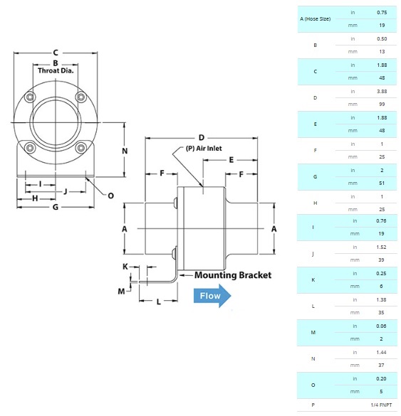 The appearance is similar to the standard Line Vac but performance has been boosted dramatically. The Heavy Duty Line Vac has been engineered to convey materials over longer vertical and horizontal distances and/or convey abrasive or heavy materials. The hardened alloy construction helps prevent premature wear that could occur with ordinary aluminum or stainless steel Line Vacs.