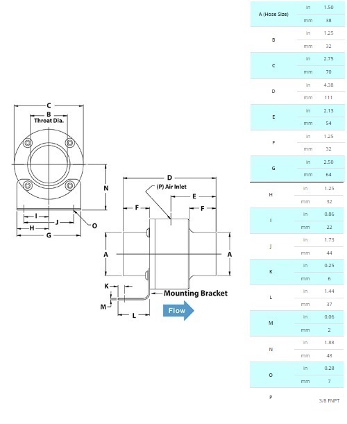 Compressed air operated Line Vac connects to standard hose to create a powerful in-line conveyor material handling system. Unlike belt or screw type conveyor equipment, Line Vac conveyors are ideal for moving large volumes of material over long distances without clogging or jamming. The material flow rate is easily controlled with a pressure regulator. An optional bracket permits easy mounting. No moving parts or electricity assures maintenance free operation.