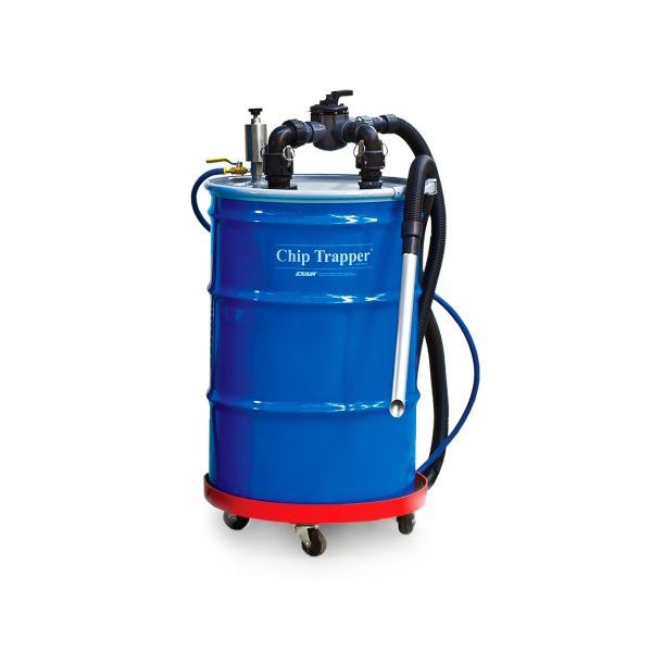 This robust industrial filtration system, the Exair 6198 55 Gallon Chip Trapper System, is engineered for the efficient removal of chips, swarf, and shavings from used coolants and other industrial liquids. It addresses the critical issue of coolant contamination in machining and manufacturing environments, providing a reliable method to recycle and reuse valuable liquids. The system significantly reduces waste and operational costs by extending coolant lifespan and ensuring a cleaner working environment. The Exair 6198 system utilizes air-powered operation, eliminating electrical hazards and simplifying maintenance, making it an essential tool for maintaining machine productivity and extending tool life.