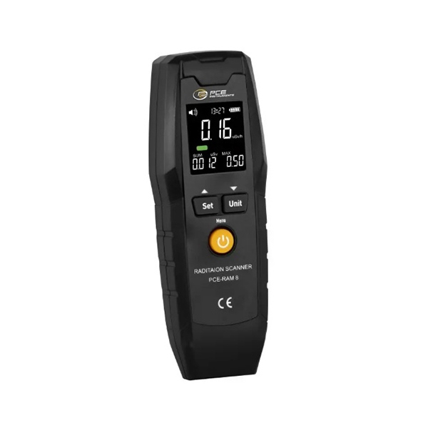 The geiger counter is a high-precision instrument developed for the detection of gamma, beta and X-rays. With its sensitive detection technology, it enables reliable measurement and monitoring of the radiation environment. Dose measurement is a central aspect of the radiation meter.The geiger counter enables precise determination of the radiation dose and allows cumulative radiation measurement over a defined period of time. These functions are crucial for the assessment of radiation exposure and compliance with safety-related standards. The results of the radiation measurements are shown on the easy-to-read display in microsieverts per hour (µSv/h) and microroentgen per hour (µR/h).The geiger counter is equipped with an adjustable acoustic alarm that alerts you if predefined radiation values are exceeded. The long battery life ensures reliable measurement over long periods of time without interruption. The field of application ranges from radiology to disaster control. Radiation measuring devices from PCE Instruments are also used in industry.
