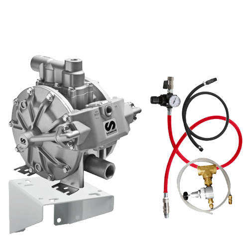 Pump packages include all hoses and adapters required for connecting an oil pump to the air supply, and oil dispense line. Samson does not provide wall mounting hardware (nuts, bolts, and anchors) for lube packages.